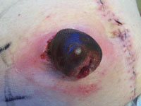 Om detta tillstånd fortgår så utvecklas en ischemisk nekros. Nekrosen kan vara både partiell eller total. Nekrosen är mörkblå/svart till färgen.